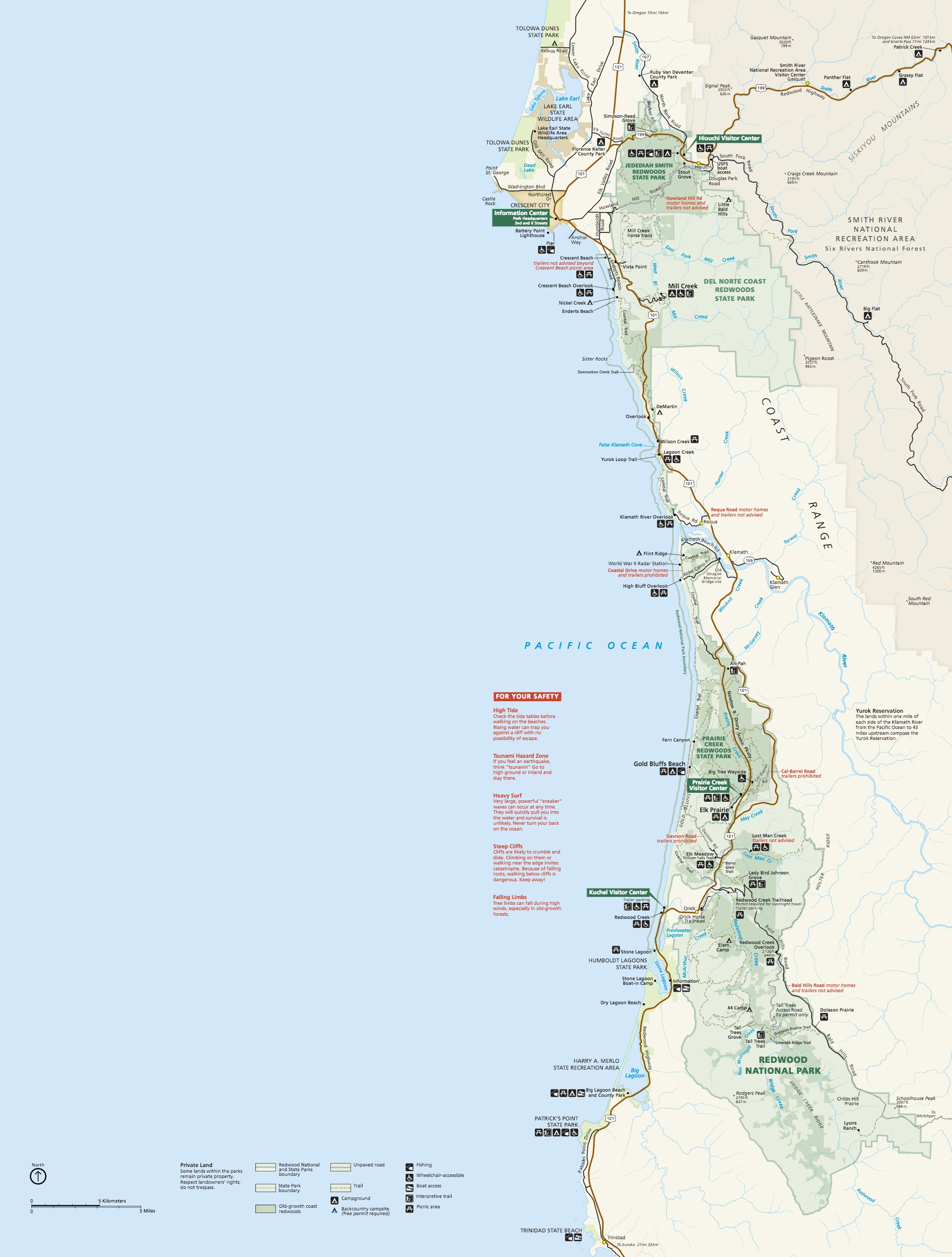 A short trail in one of the denser parts of Redwood NP, Simpson-Reed is just off of Highway 199, weaving through what feels like a jungle, especially so when the park is shrouded in mist. A very flat trail, the dirt path passes some of the taller Redwoods at the beginning of the loop.