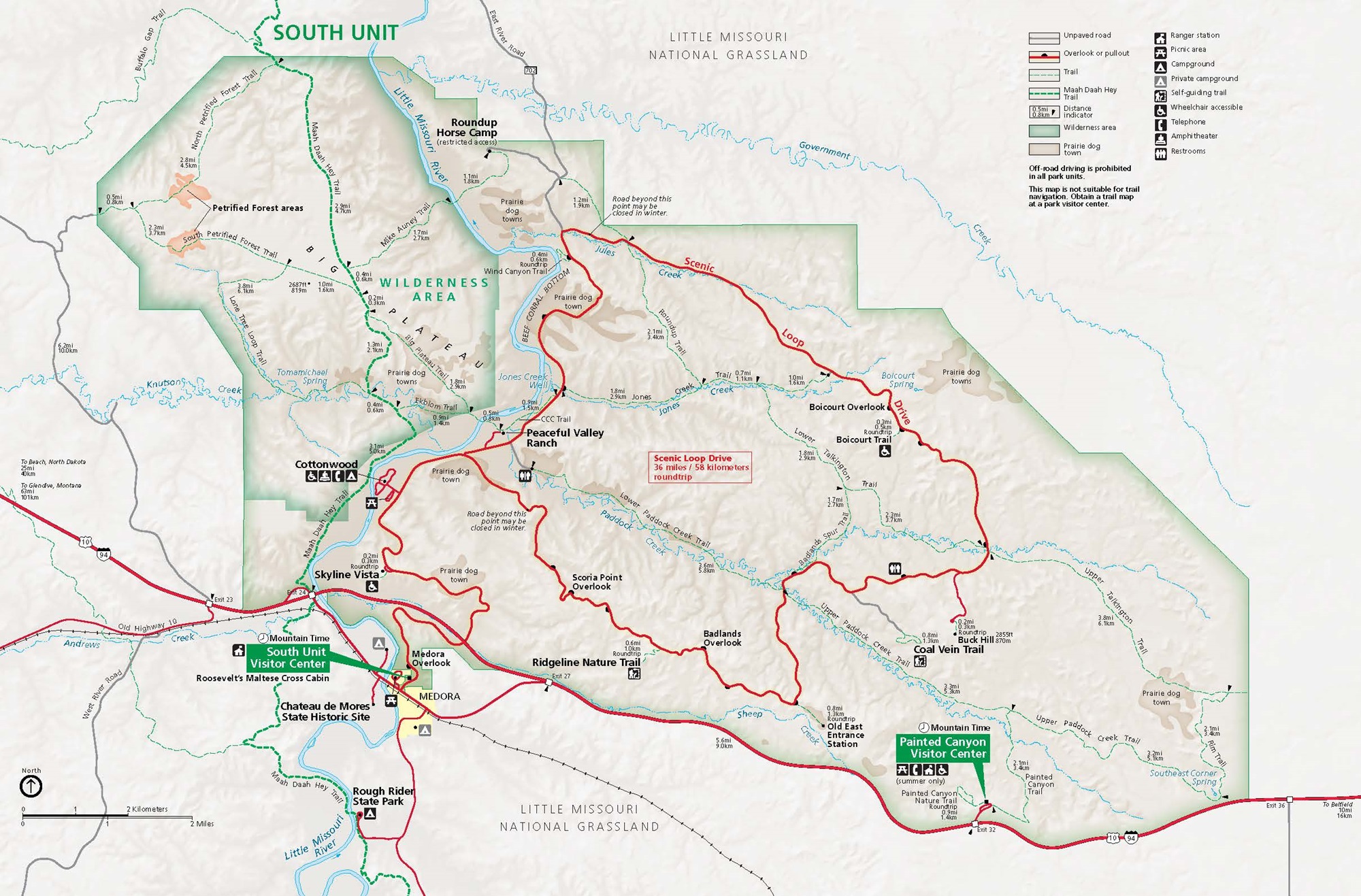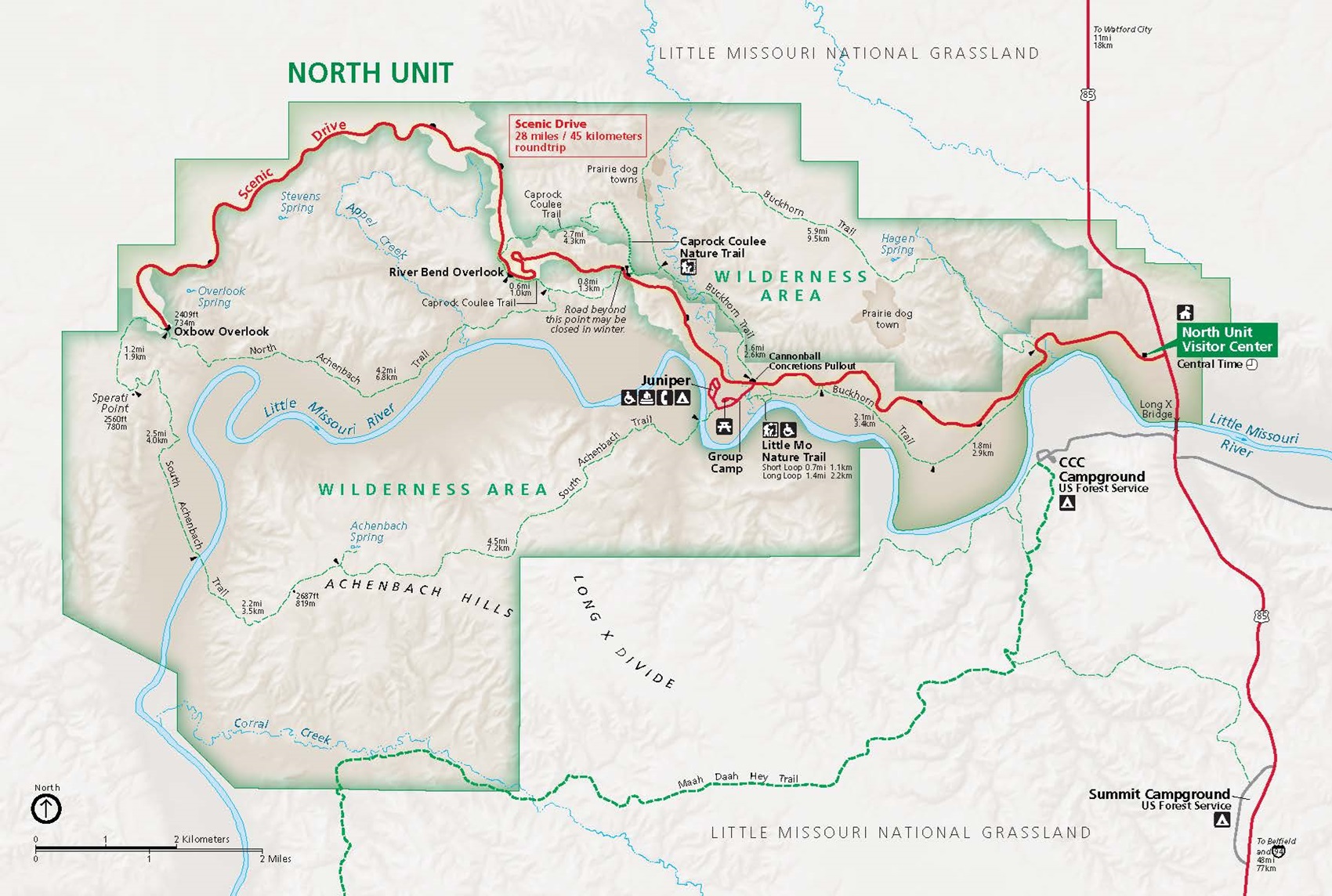 The park is split into three units and rather uniquely, two time zones. Most visitors explore the south unit, being close to Medora, a cute, Western style town with shows including a musical that is a must watch for visitors! In the northern unit, an hours drive from the south, there's a 28 mile out and back scenic drive to Oxbow Overlook and numerous hikes in designated areas of wilderness. And in between lies Elkhorn ranch, built by Theodore Roosevelt. However, the unit is largely undeveloped, with no facilities, and requires a 4x4 to reach the secluded area of the park along a scenic road.